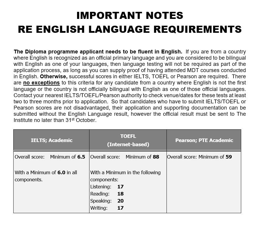 Before applying for admission to the next MDT Diploma Programme, please ensure you have thoroughly read and understood the following: